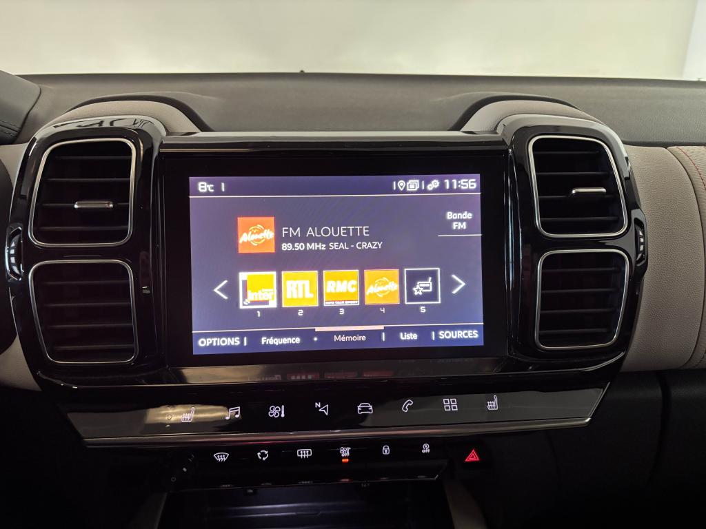 2 Prises USB3 sièges arrière indépendants, coulissants, inclinables et escamotablesABS avec répartiteur électronique de freinage (REF) et aide au freinage d'urgence (AFU)Accès et démarrage mains-libresAccoudoir central moussé à ouverture papillon et réfrigéréAérateurs en rang 2Aide au démarrage en côteAirbags frontaux, latéraux AV, rideauxAllumage automatique des projecteursAllumage des feux de détresse en cas de forte décélérationCalandre supérieure Noir BrillantCaméra de recul avec Top Rear VisionCITROËN Connect Nav + CITROËN Connect Box avec Pack SOS et assistance inclusClignotants impulsionnelsClimatisation automatique bi-zoneCombiné numérique 12,3" personnalisableCommandes au volantCondamnation centralisée avec plipContours des vitres latérales chromésContrôle dynamique de stabilité (ESP)Coques de rétroviseurs couleur caisseDétection de sous-gonflage des pneumatiquesDirection à assistance électriqueEclairage d'accueil et d'accompagnementElargisseurs d'ailes et bas de caisse noir matEssuie-vitre avant avec système de lavage 'Magic Wash'Feux arrière 3D à LEDFeux diurnes à LEDFrein de stationnement électrique automatiqueGarniture cuir grainé Graphite /Tissu Graphite - Ambiance Metropolitan GreyHayon électrique mains libresJantes alliage 19" ART Diamantées bi-tonKit de dépannage provisoire de pneumatiquesKit mains libres BluetoothLève vitres électriques avant et arrière impulsionnelsMirror ScreenMontant central extérieur noir brillantPack ConfortPack Drive Assist +Pack Look Silver anodiséPack SafetyPack Safety +Pare-chocs arrière avec double canule chroméePédalier et repose-pied aluminiumPeinture opaque Blanc BanquisePlafonnier avant et lecteur de cartesPoignées de portes extérieures couleur caissePrise 12 volts sur console centrale et dans le coffreProjecteurs Full LEDRadio Numérique DABRecharge smartphone sans filRétroviseur intérieur électrochromeRétroviseurs extérieurs électriques et dégivrantsSécurité enfants manuelleSeuils de portes avant en inoxSiège conducteur avec réglage lombaireSièges Advanced ComfortSièges conducteur et passager réglables en hauteurSurtapis aux places avant et arrièreSuspensions avec Butées Hydrauliques ProgressivesSystème Audio mp3 6HPSystème de fixation ISOFIX aux places latérales arrière et passager avantSystème Stop & StartTémoin de non-bouclage des ceinturesVitres latérales et lunette arrière surteintéesVitres latérales feuilletées acoustiques à l'avantVolant croûte de cuir, réglable en hauteur et en profondeur