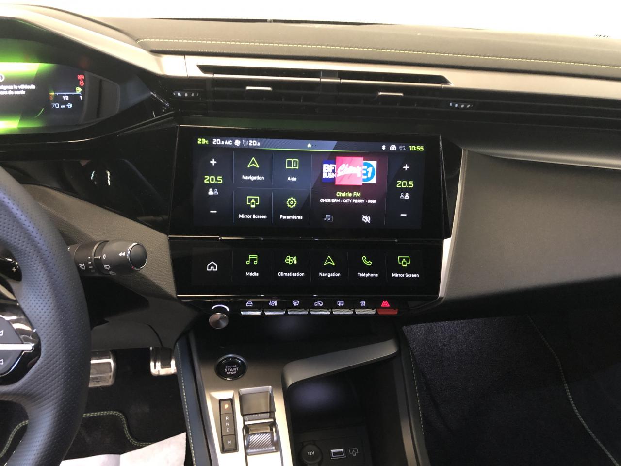 2 Prises USB C à l'arrière2 Prises USB C à l'avant2 télécommandes 3 boutons4 poignées de maintienAccès et démarrage mains-libresAccoudoir central avant avec rangementAide au stationnement arrièreAide au stationnement avantAir conditionné à régulation automatique 2 zonesAirbags frontaux conducteur et passager adaptatifs (passager neutralisable), latéraux avant et rideaux avant et arrièreAlerte active de franchissement involontaire de ligne et bas côtéAlerte attention conducteurAllumage automatique des projecteursBandeau entre feux arrière noir brillantBanquette arrière rabattable 1/3-2/3Boitiers de rétroviseurs extérieurs noir brillantCalandre avant spécifique Noir verni avec inserts chromés et écopes Noir BrillantCaméra de reculCeintures de sécurité arrière trois points à enrouleur (x3), avec prétensionneurs et limiteurs d'effort aux places latéralesCeintures de sécurité AV réglables en hauteur : 3 points à enrouleurs avec prétensionneur et limiteur effort intégréCiel de pavillon noirCommutation automatique des feux de routeDécor Aluminium sur panneaux de porteDétection de sous-gonflage des pneumatiquesDiffuseurs d'air aux places arrièreDirection assistée électriqueDriver Sport Pack : personnalisation du combiné spécifique, sonorité du moteur amplifiée et plus sportive ( désactivable)Elargisseurs de pare chocs avant et de bas de caisse latérauxESP (contrôle dynamique de stabilité ) + aide au démarrage en penteEssuie-glace à déclenchement automatiqueFeux arrière spécifiques avec allumage dynamique griffe à griffeFeux diurnes à LED avec signature lumineuseFixations Isofix (aux places latérales arrière)Fonction Mirror Screen (Apple Carplay / Android Auto ) sans filFrein de parking électriqueJantes alliage 18'' Kamakura diamantéesJupe arrière en noir brillant avec jonc chroméLécheurs de vitres noir brillantLève-vitres électriques arrière à fonctions séquentielle et anti-pincementLève-vitres électriques avant à commande séquentielle et anti-pincementLimiteur de vitesseModes de conduite Eco / SportMonogrammes latéraux emblème LionNavigation connectée avec écran central tactile 10‘’ et i-Toggles virtuels personnalisablesPack Drive AssistPack Safety PlusPare brise teinté acoustiquePédaliers Sport et repose-pied en AluminiumPeinture métallisées Bleu ObsessionPeugeot Connect SOS & AssistancePeugeot i Cockpit avec combiné d'instrumentation numérique 10'' personnalisablePlanche de bord avec jonc transversal peint, décor Alu et surpiqûres VertPrise 12V à l'avantProjecteurs Matrix LEDReconnaissance étendue des panneaux de circulationRéglage lombaire conducteurRétroviseur intérieur électrochromeRétroviseurs extérieurs électriques avec clignotants à LED intégrés, dégivrants et rabattables électriquementSellerie tri matières tissu / TEP / New BelomkaSeuils de portes avant en aluminiumSièges conducteur et passager réglables en hauteurSmart Multidrive : personnalisation du combiné et éclairage d'ambiance LED intérieur associés aux modes de conduiteSurtapis aux places avant et arrièreVitres latérales et lunette arrière surteintéesVolant à réglage manuel en hauteur et en profondeurVolant cuir