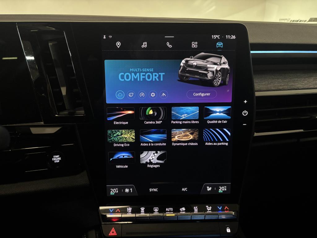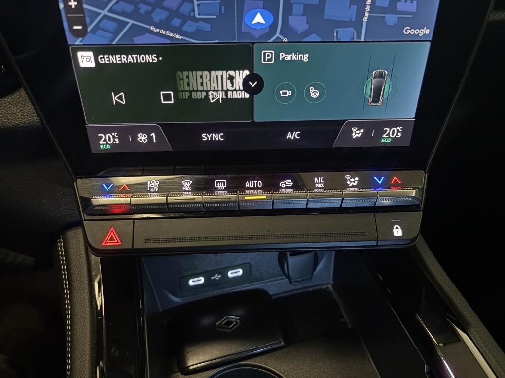 Aide au démarrage en côteAide au maintien dans la voieAide au parking avant et latéralAide au stationnement arrièreAlerte de changement de voie intempestifAlerte de franchissement de ligneAlerte distance de sécuritéAllumage automatique des essuie-glacesAntenne de type requin noir étoiléAuto-update inclus pendant 7 ansBanquette arrière coulissante 1/3-2/3 avec accoudoir centralCalandre à damier ice blackCaméra de reculCarte Renault, accès et démarrage « mains-libres »Chargeur de smartphone par inductionClimatisation automatique bi-zoneEclairage intelligent (commutation automatique feux de croisement/feux de route)Feux LED adaptive vision (avec fonction antibrouillard intégrée)Frein à main automatiqueFreinage d'urgence autonome avec fonction intersectionFreinage d’urgence automatique urbain/péri-urbain avec détection piétons et cyclistesJantes alliage 19" Komah diamantées noiresLimiteur de vitesseNotice d’utilisation digitale embarquée dans le système multimédia du véhiculeOpen R Link 12": système multimédia avec google intégré incluant pack navigation (Google Mpas et Google Assistant) pendant 5 ans et pack infotainment (Google Play) avec 3 GBPack remote services (via l'application My Renault) inclus pendant 5 ansPeinture Blanc GlacierRéglage en hauteur du siège passagerRégulateur de vitesseRenault MULTI-SENSE (choix des modes de conduite)Réplication smartphone compatible Android Auto & Apple CarPlayRétroviseur intérieur électrochrome sans contourRétroviseurs rabattables électriquementSellerie mixte simili-cuir / tissu dégradé de grisSièges avant réglables manuellementSystème d'appel d'urgenceSystème de surveillance de la vigilance du conducteurTableau de bord open R 12,3"Traitement sonore Arkamys Auditorium avec 6 haut-parleursVitres teintées arrièresVolant en textile enduit grainé