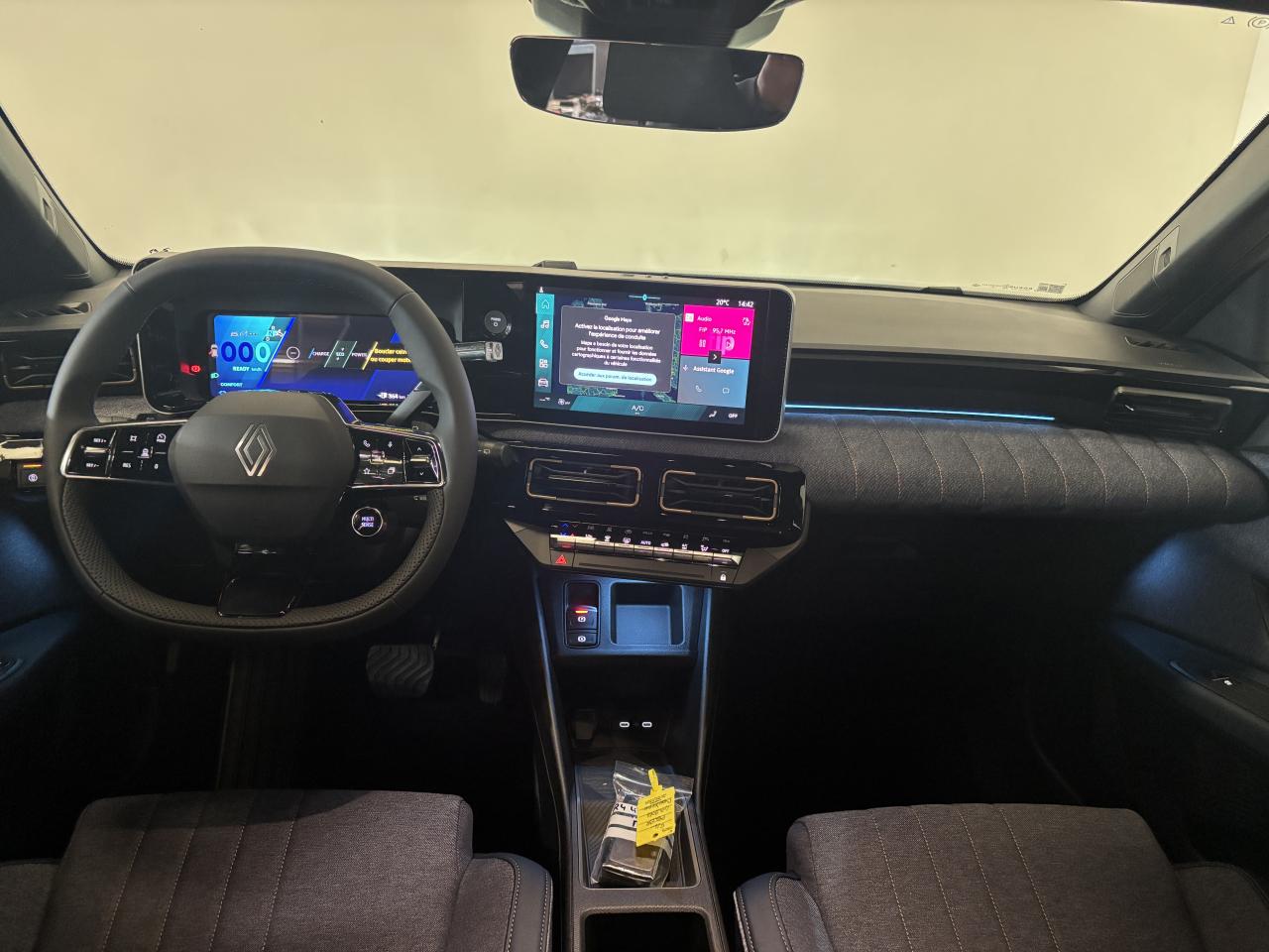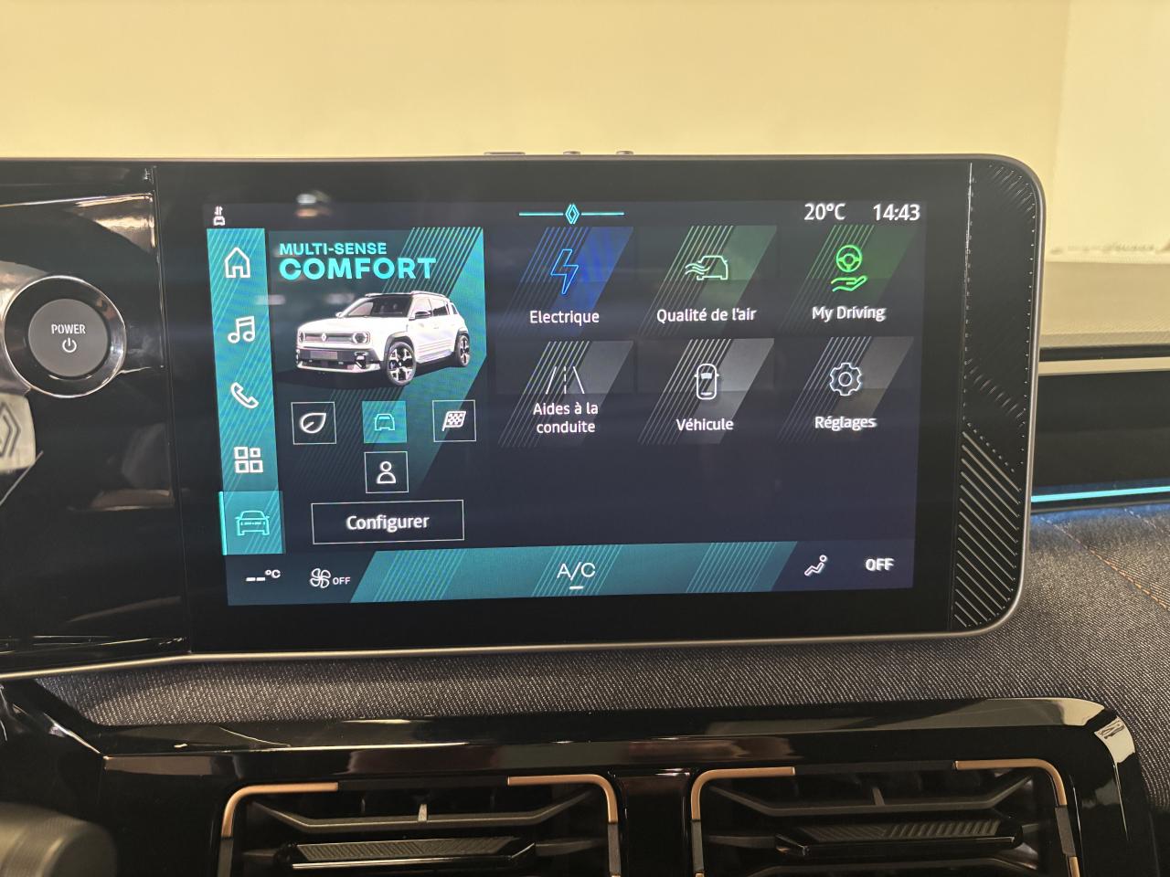 2 prises USB-C à l’arrière de la console avec rétro-éclairage et rangement2 prises USB-C à l’avant de la console avec rétro-éclairageABS (antiblocage de freins)Aide au démarrage en côteAide au maintien dans la voieAide au parking arrièreAirbags frontaux avec commande de désactivation d'airbag passagerAirbags latéraux AV/ARAlerte de distance de sécuritéAlerte de non bouclage de la ceinture de sécuritéAndroid Auto et Apple CarPlayAnneaux de fixation dans le coffreAntenne requinAppel d'urgenceAppuie-têtes arrièreAssistance au freinage d'urgenceAvertisseur de sortie de voieAvertisseur sonore piétonsBanquette arrière rabattable en 60/40Barres de toit fixes longitudinales noires en aluminiumBatterieCâble de recharge mode 3 (6,5 m)Caméra de reculCapteur de luminositéCapteur de pluieCarte accès et démarrage mains-libresChargeur smartphone à inductionCiel de toit gris chiné embosséClimatisation automatiqueCommutation automatique des feux route/croisementCompatible Adaptateur Power to Object (charge bidirectionnelle V2L)Compatible Mobilize powerCondamnation centralisée des portesConsole centrale haute avec accoudoir textile refined noir et porte-gobeletContour de calandre et logo Renault éclairés avec séquence d’accueil lumineuseCoques de rétroviseurs noir étoiléCrochets dans le coffreDécor d’ailes avantDirection assistée électrique avec assistance variablee-pop shifter, levier de vitesse au volantEcran conducteur 10”Emplacement rangement smartphoneESC (système de controle de stabilité)Feux avant & arrière Full LEDFOTA (Firmware Over-The-Air)Frein de parking électrique avec fonction Auto-HoldFreinage automatique d’urgence aux intersectionsFreinage automatique d’urgence urbain, inter-urbain (avec détection voitures, piétons, cyclistes)Freinage récupératif 4 niveaux réglable par palettes au volant avec fonction One PedalGestion thermiqueHabillage textile « jean » matelassé 100% recyclé avec surpiqûres cuivre sur planche de bord et panneaux de porte avantHayon manuelJantes alliage diamantées noires 18” sixtiesJonc noir de vitres et ceinture de toitKit de réparation pneumatiqueLimiteur de vitesseLiseuses LED à l’avant et à l’arrièreLunette arrière chauffanteMaintenance connectéeMode EcoMultisense 4 modes (perso/sport/comfort/eco)My safety switchOpenR link 10,1” : système multimédia connecté avec Google intégré et reno l’avatar officiel Renault associé à Chat GPTPack contrôle à distance (via l’application My Renault) inclus pendant 5 ansPack navigationPeinture monotonPoche aumonière au dos des sièges avantPoignée de maintien passager avantPoint d'ancrage ISOFIX pour 2 sièges- enfants sur sièges latéraux arrière et siège passager (I-size)Pompe à chaleurPréconditionnement de la température batterie en roulantPrise 12 V dans le coffrePrise 12 V sur console centrale avantRangement sous plancher de coffre avec bac plastiqueRangements latéraux dans le coffreReconnaissance des panneaux de signalisation avec alerte de survitesseRégulateur de vitesse adaptatif avec fonction Stop & GoRépétiteur de clignotant sur rétroviseurs extérieursRéplication smartphone sans filRétroviseur intérieur électrochrome sans contourRétroviseurs extérieurs rabattables électriquementRétroviseurs extérieurs réglables électriquement et dégivrantsSafety coachSafety scoreSangles de fixationSellerie mixte textile « jean » 100% recyclée, matelassé avec surpiqûres et rivet cuivre / textile refined bleu foncéServices connectésSiège conducteur réglable en hauteur manuellementSiège passager avant avec dossier rabattableSiège passager réglable en hauteur manuellementSki gris avant / arrière métallique foncéSystème audio Arkamys auditorium avec 6 haut-parleursSystème d’insonorisation smart cocoonSystème d’optimisation de la température batterie (lors d’une charge rapide DC)Système de surveillance de l'attention du conducteurSystème de surveillance de la pression des pneumatiquesVitres avant et arrière électriques avec fonction d'ouverture/fermeture par impulsion sur toutes les vitresVitres de custode et lunette arrière surteintéesVolant en textile refined noir perforé, avec bouton multi-senseVolant multifonction réglable en hauteur et profondeur